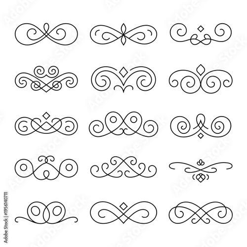 Collection of ornate black swirls and decorative flourishes in a grid