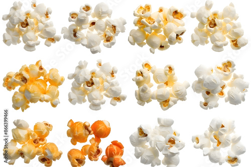 Collection of popcorn, isolated on transparent background
