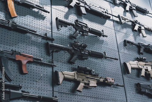 rifle, gun, weapon, munition, wall, shop, metal, sale, firearm, security, equipment, shooting, shotgun, military, caliber, background, assault, store, army, steel, sharpshooter, tactical, safety, weaponry, concept, rack, protection, defense, modern, arsenal, ak-47, collection, expo, grey, dark, box, munition, war, armed, storage, force, danger, warfare, cartridge, fight, soldier, arm, bullet, hunting