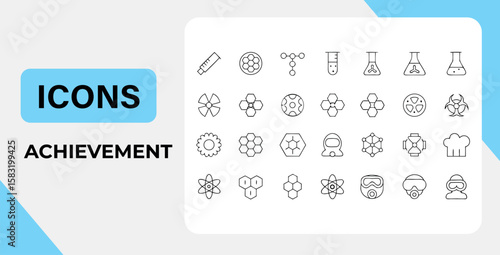 Collection of Science and Achievement Icons Displaying Chemistry, Biology, and Success Related Symbols in Outline Style for Presentations