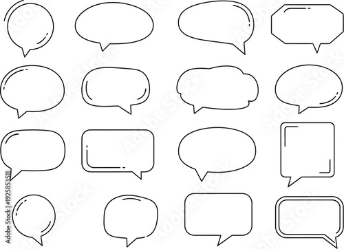 Collection of simple outline speech bubbles presents diverse communication shapes for message placement.