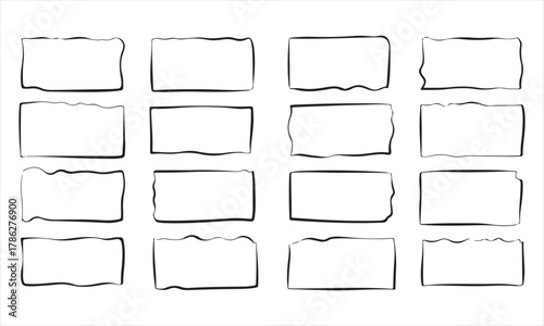 Collection of sixteen torn paper rectangle frames with rough edges for design elements