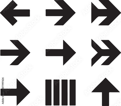 Collection of various black navigation direction icons on transparent background