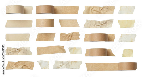 Collection of Various Tapes Strips and Rolls isolated on transparent background