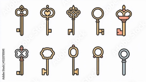 Collection of vintage keys, decorative, digital illustration, graphic design, possible use as icon set or wallpaper