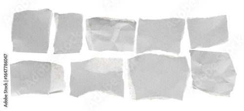 Collection sheets of note papers, crumpled scraps isolated on white background, clipping path