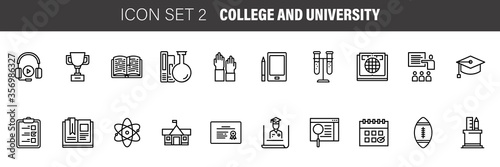 College and university education Line Icons Set. Vector Set of School and Knowledge Modern Line Icons for Web and Mobile
