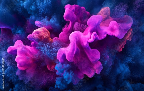 Color explosion of magenta and cyan on dark blue background