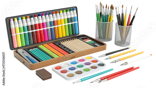 color pencils and brushes
