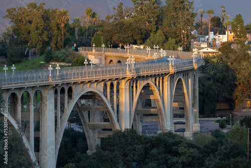Colorado Street Bridge in Pasadena at golden hour
