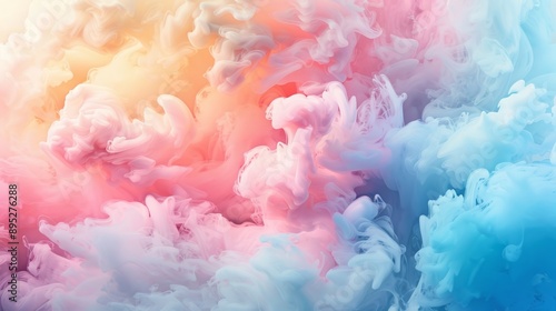 Colored inks swirling in water to form abstract background with colorful fog shapes and gradient
