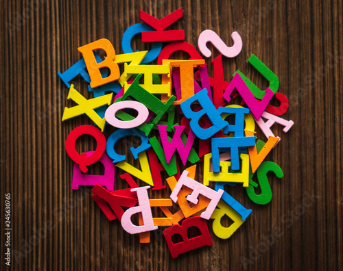 colored letters on a dark background. day of knowledge. school.