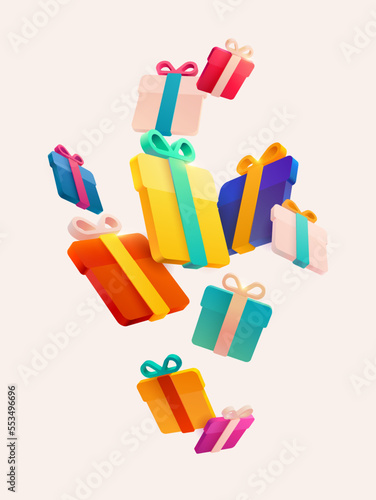 Colored stylized 3D gift boxes. Realistic vector illustration.