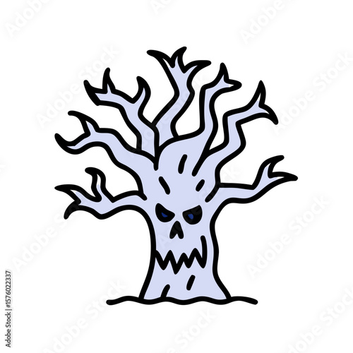 Colored vector icon of a creepy tree, symbolizing halloween, horror, mystery, and haunted forests. Isolated on a transparent background