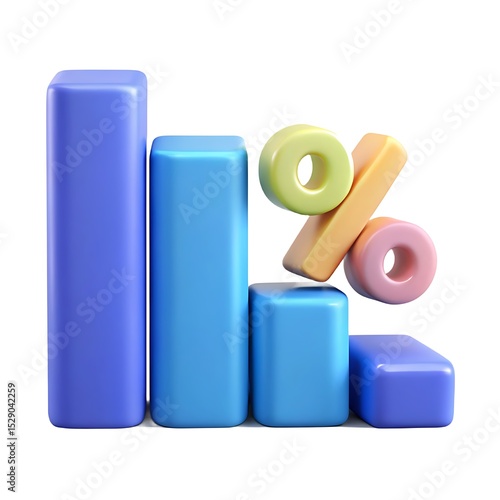 Colorful 3d bar graph with percentage sign isolated on white background