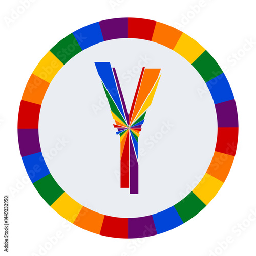 Colorful Abstract capital Letter Y on White Background with Rainbow Fragment Circle Design