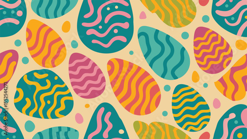 Colorful abstract Easter egg shapes with wavy patterns and dots background