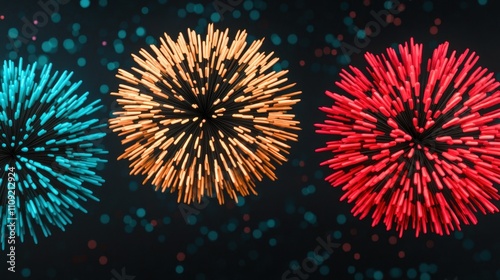 Colorful Abstract Fireworks Burst on Black Background for Celebration and Festivity