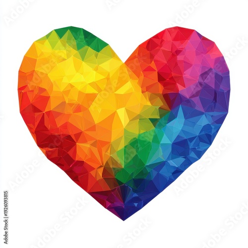 Colorful Abstract Geometric Heart Shape with Rainbow Gradient Colors Isolated on White Background
