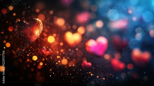 Colorful abstract heart bokeh lights for valentine's day background