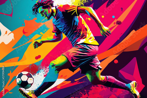 Colorful abstract illustration of a man playing soccer, Generative AI