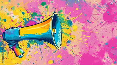 Colorful Abstract Megaphone with Paint Splatter Background