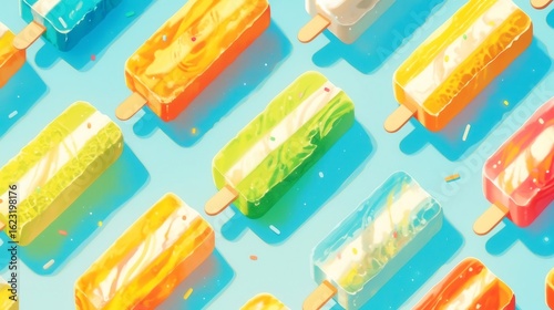 Colorful abstract pattern, vibrant geometric shapes in bright hues, suitable for digital backgrounds or creative projects.