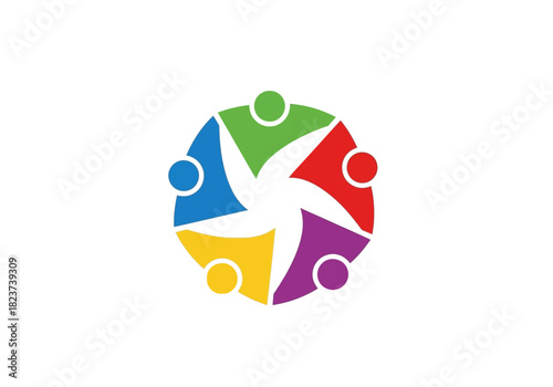 Colorful Abstract People Circle Logo Design for Teamwork and Collaboration.