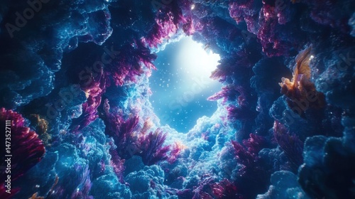 Colorful Abstract Tunnel of Crystals with Bright Light in Fantasy Environment