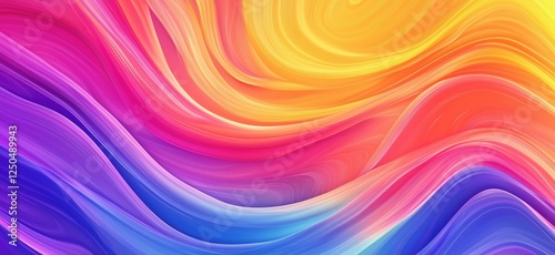 Colorful abstract waves in vibrant hues of pink, orange, purple, and blue, copy space for text