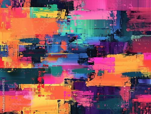 Colorful and abstract pixel backgrounds displayed in a digital artwork.