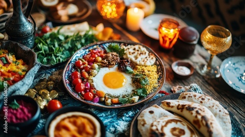 Colorful and Vibrant Breakfast Table with Eggs and Fresh Ingredients