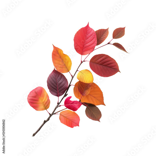 Colorful autumn leaves on a branch showcasing vibrant hues in a tranquil setting during fall season