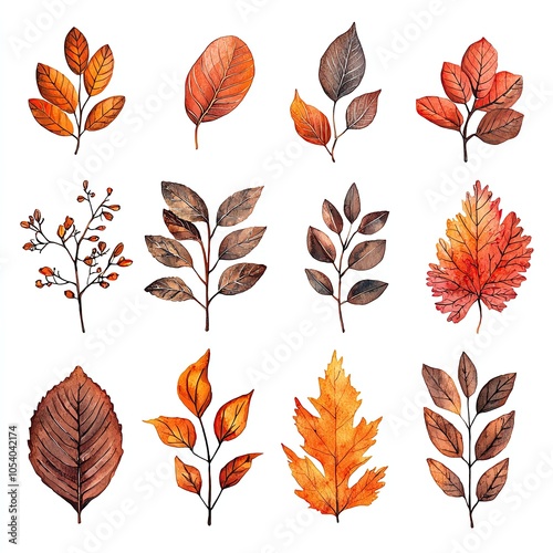 Colorful autumn leaves on white background