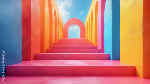 Colorful background of stairs to heaven in pastel tones.