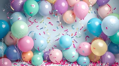 Colorful Balloons and Confetti Burst.