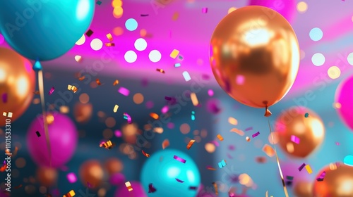 Colorful Balloons and Confetti Festively Floating in a Vibrant Celebration Setting