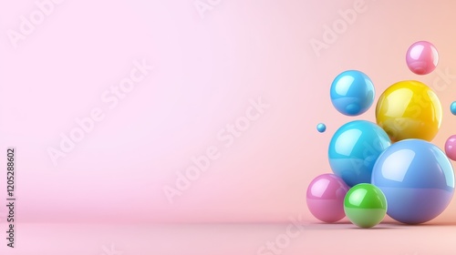 Colorful balloons floating against soft pink backdrop celebration of joy and festivity