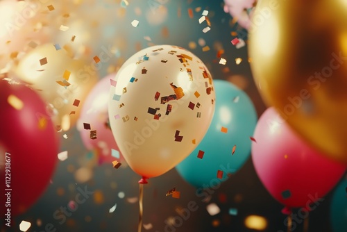 Colorful Balloons with Confetti Falling in a Festive Atmosphere Creating a Joyful Celebration Scene Perfect for Parties and Special Events
