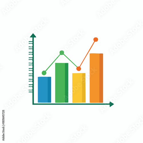Colorful bar chart and line graph showing business data statistics and growth analysis
