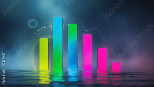 colorful bar chart on a dark background Colorful graph with a rainbow in the middle of itA close up of a
