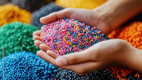 Colorful Beads in Hands with Vibrant Background for Creative Projects