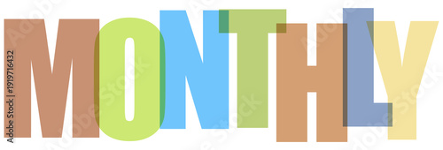 Colorful block letters spelling out the word monthly in a playful design. isolated on transparent background