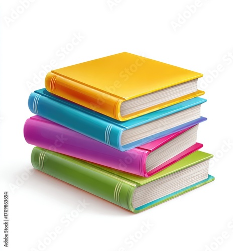 Colorful books stacked high, vibrant covers
