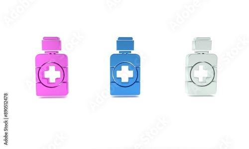 Colorful Bottle of medicine syrup icon isolated on white background. Minimalism concept. 3D render illustration