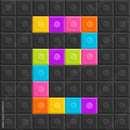 colorful bricj block number two, flat design