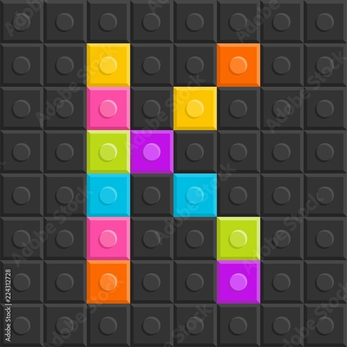 colorful brick block letter K, flat design