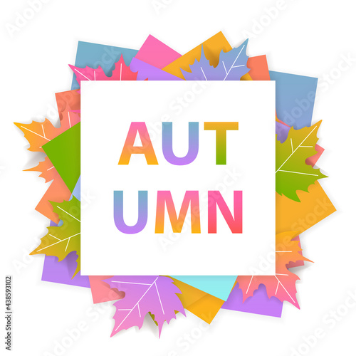 colorful bright autumn fall seasonal frame background with gradient colored maple leaves