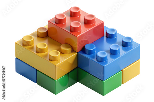 Colorful building blocks stacked in a geometric pattern isolated on transparent background