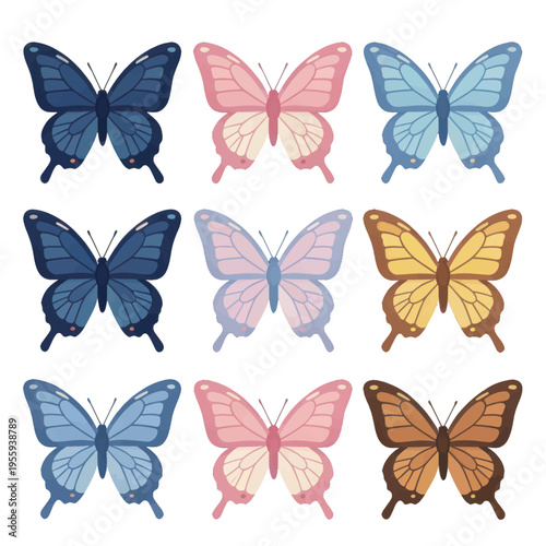 Colorful Butterfly Icon Set Vector, Minimalist Style for Web and App Design